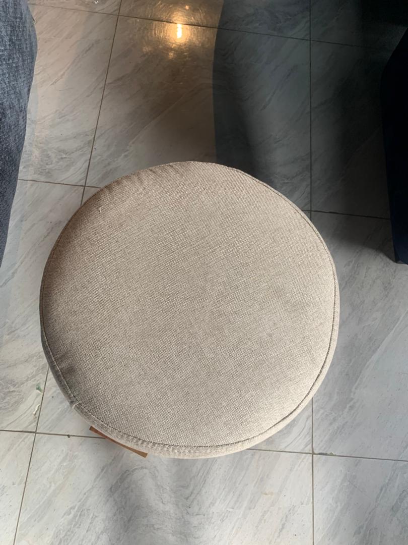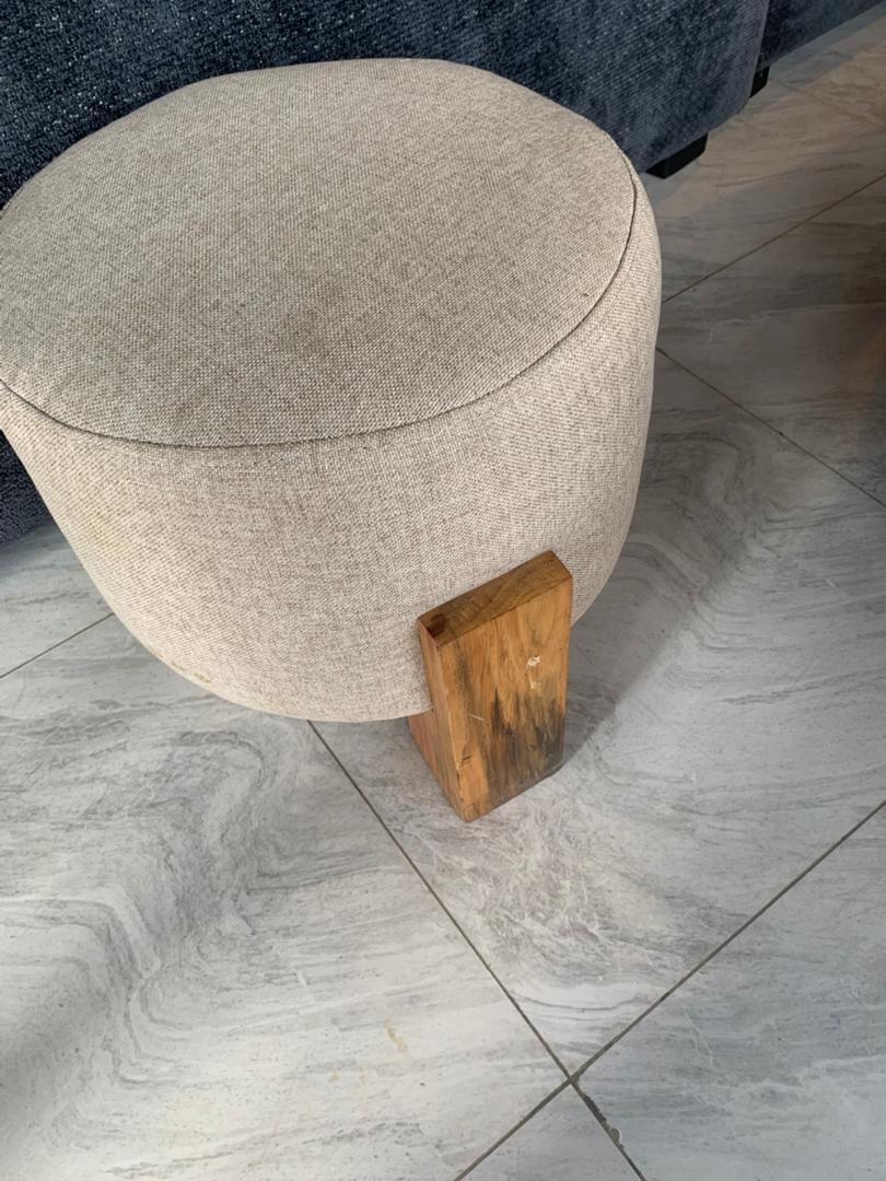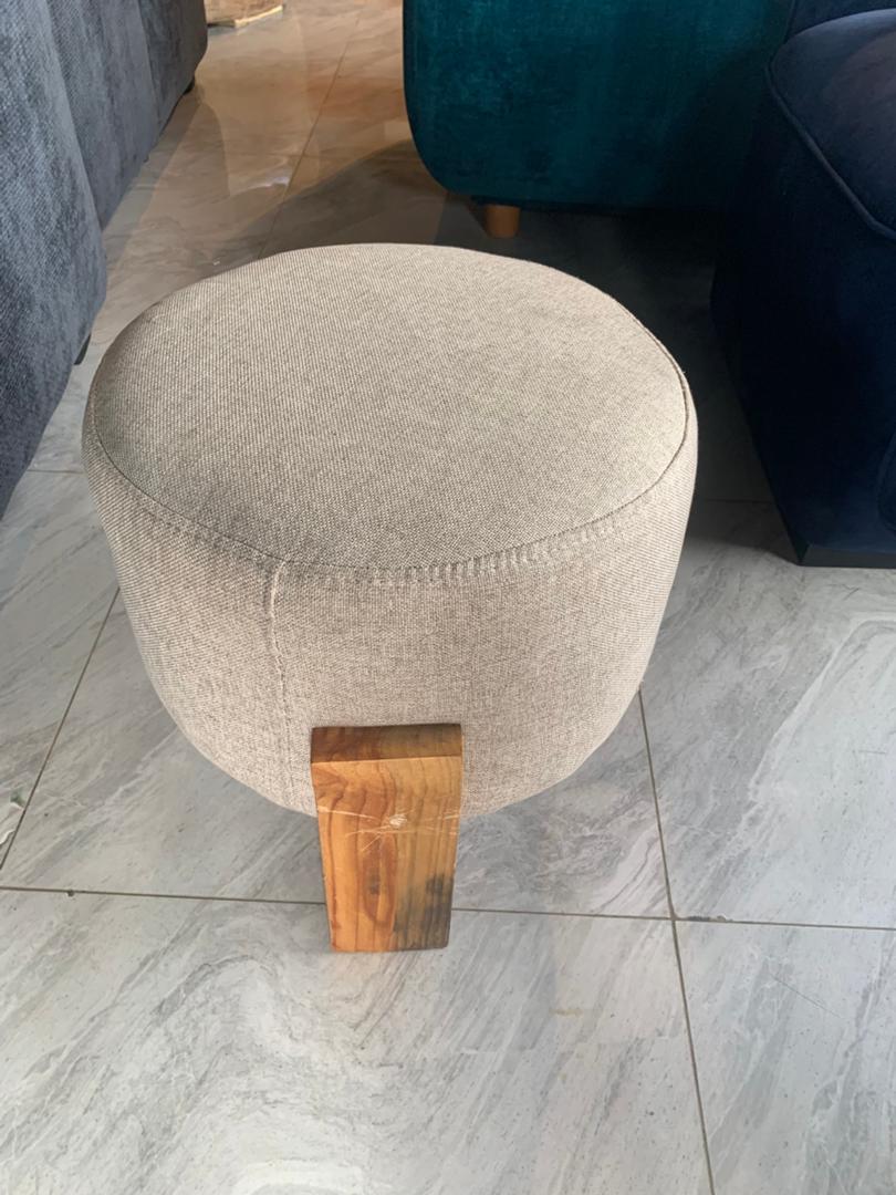 Elevate your space with bold comfort. Ottoman made in high quality fabric with wooden legs