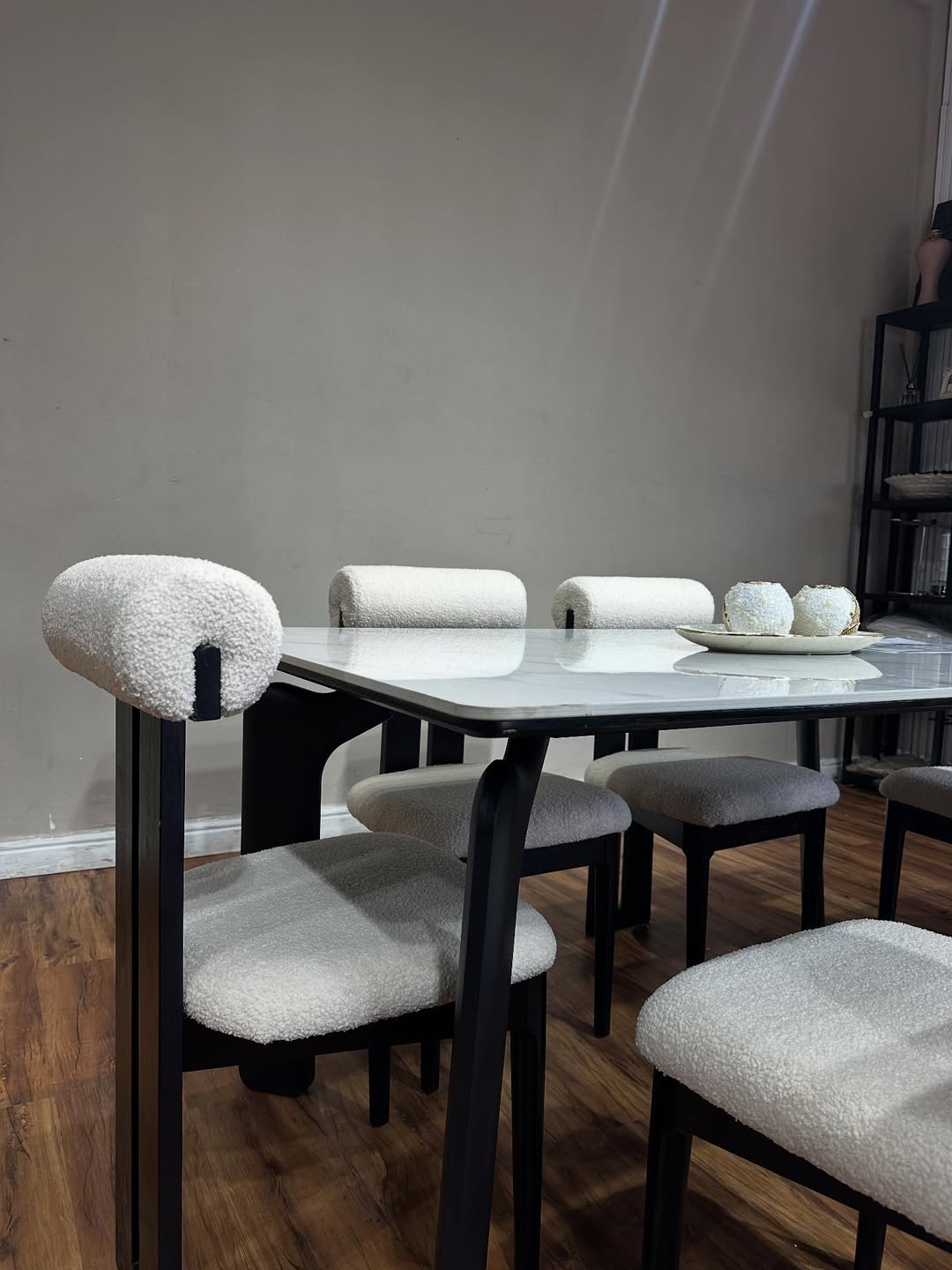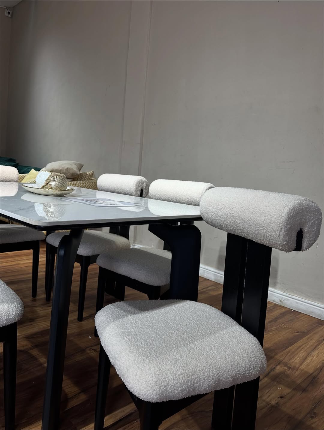 Dine in style with our contemporary dining set made exclusively with well detailing and beautiful fabric.