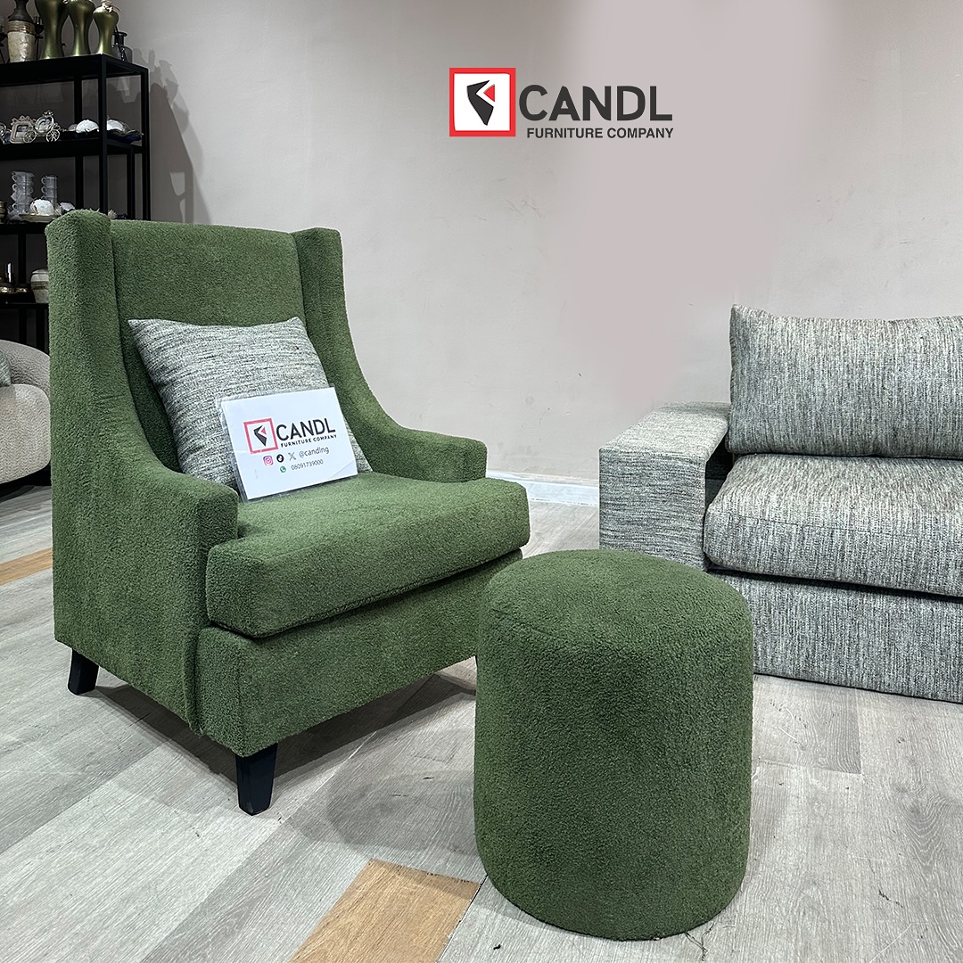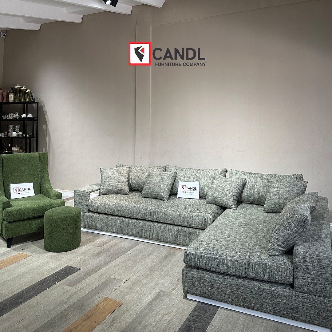 Indulge in elevated living. This statement L-shape, paired with a bold accent chair and plush ottoman, is crafted for homes that speak luxury in every detail.